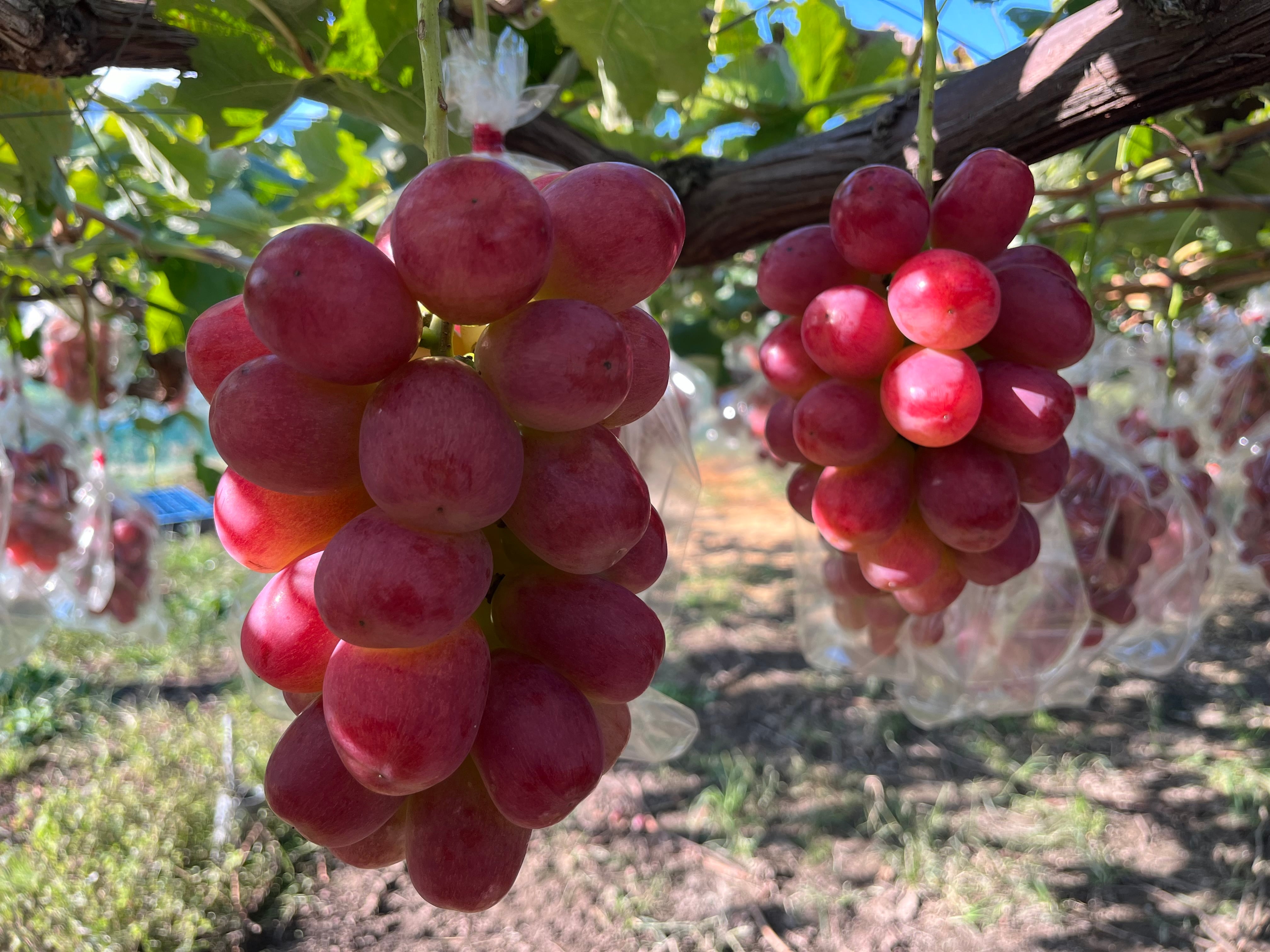 宝石のように輝く赤い果実は、一粒頬張ればしっかりとした甘みと華やかな香りが広がり、見た目も味わいも特別感のあるぶどうです。