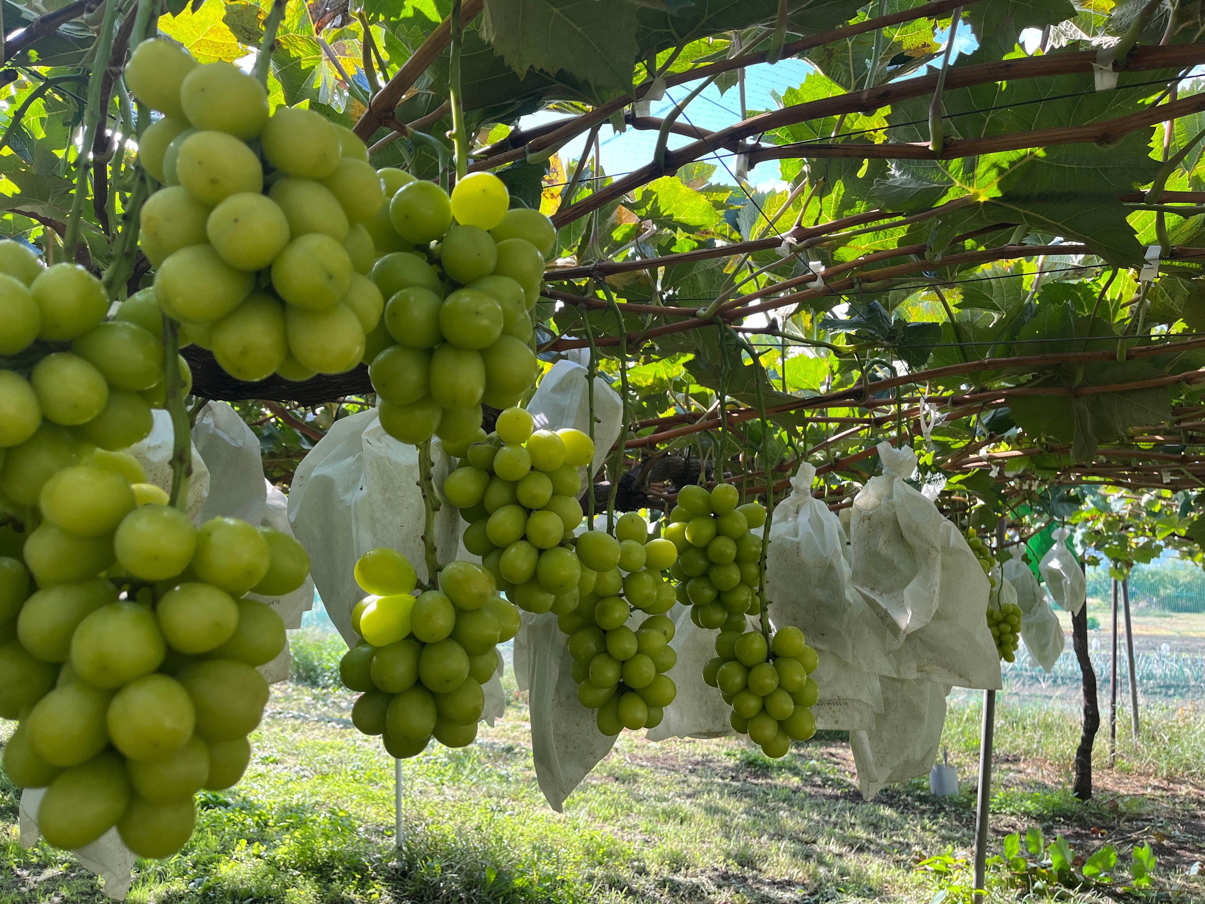 鮮やかな黄緑色の果実は、一粒頬張ればしっかりとした甘みと、華やかで爽やかなマスカットの香りが口いっぱいに広がります。